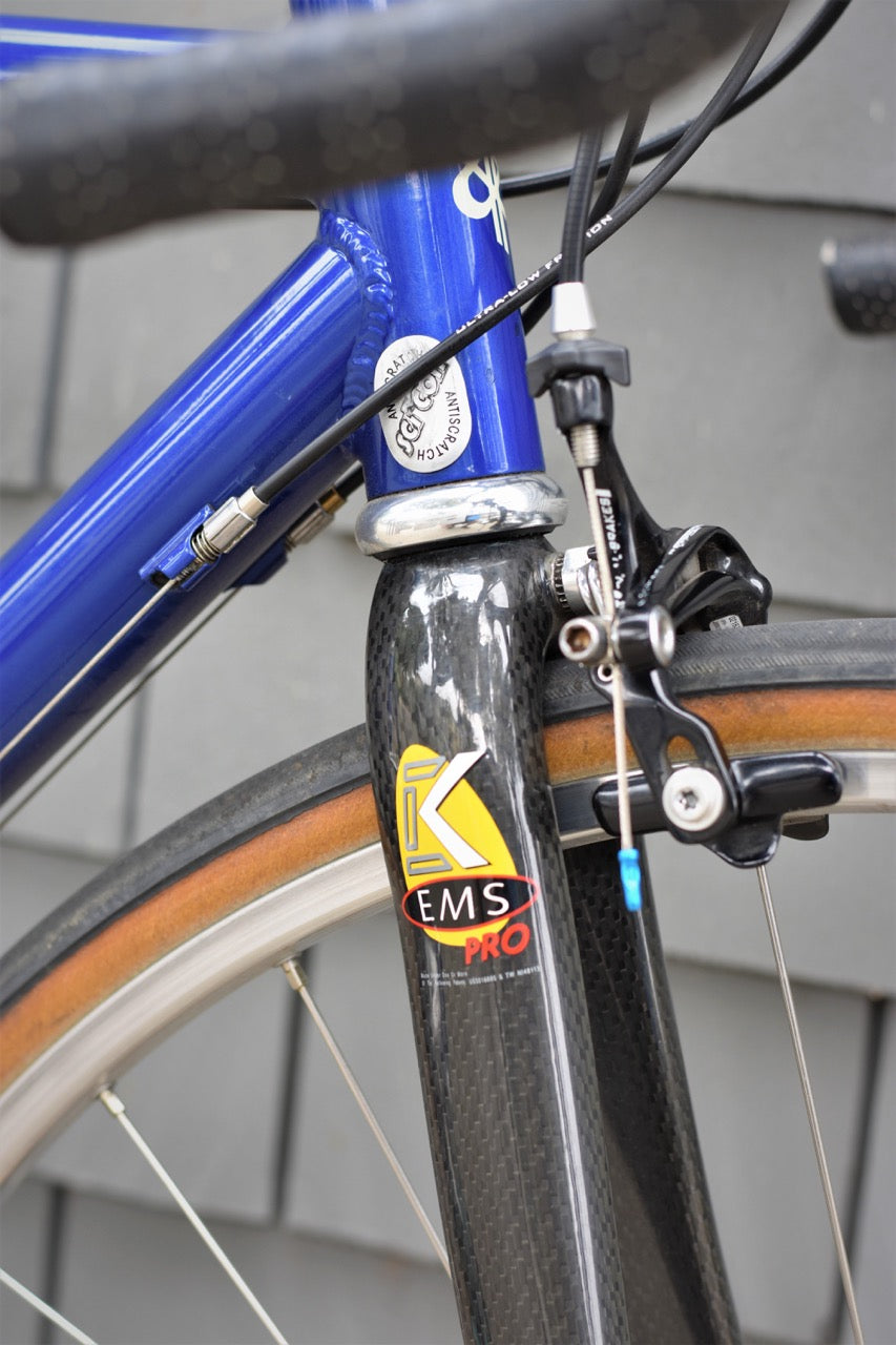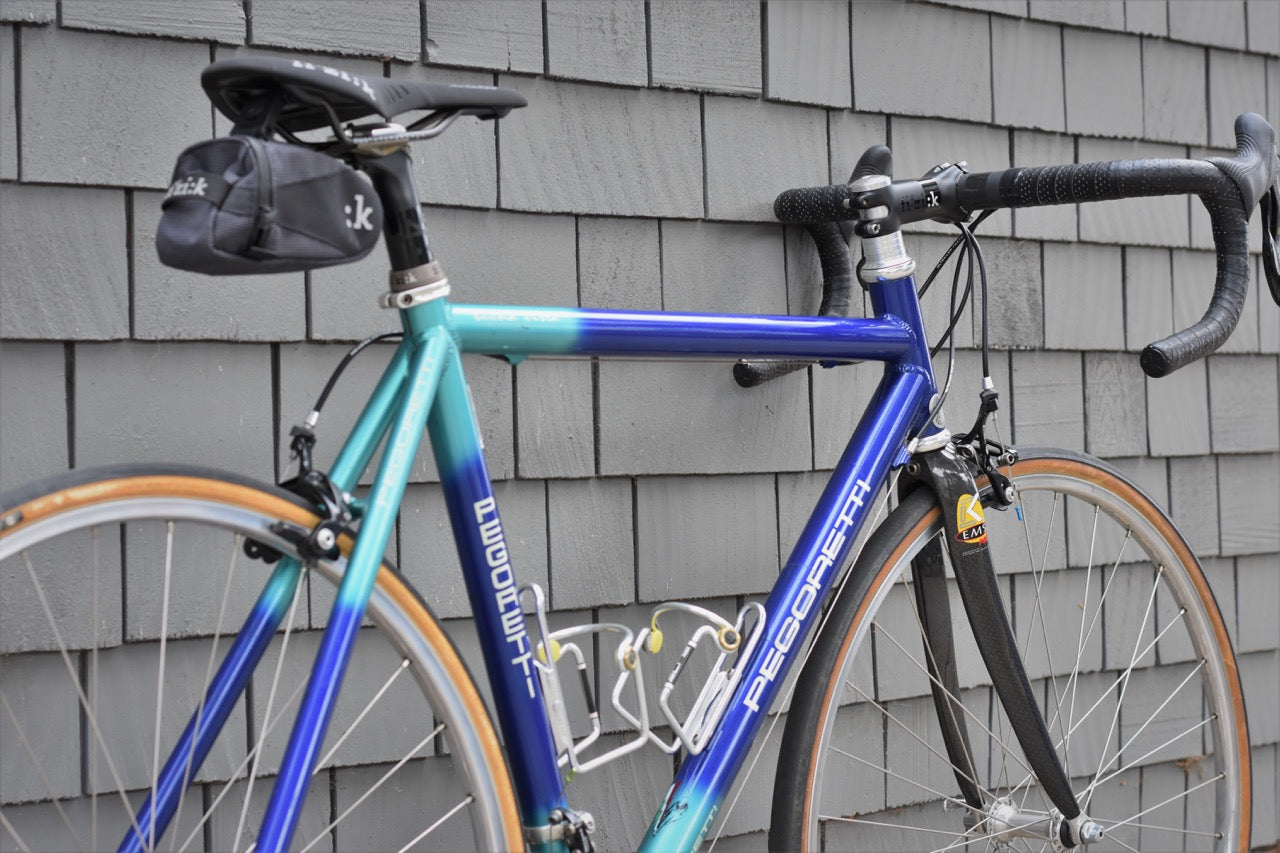 This is an alloy Dario Pegoretti frame built up with a mix of Campagnolo Record and Chorus components. This bike has a carbon fork and is a size 55. Please call or email for any questions regarding details of this custom build.